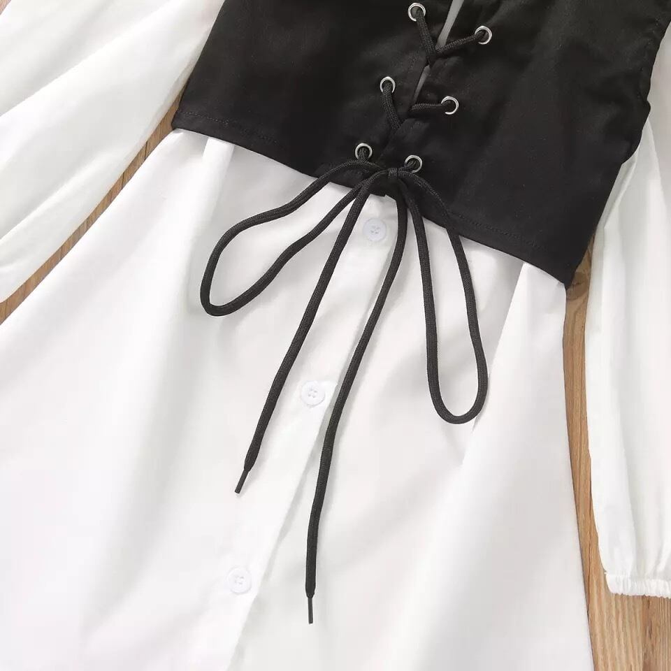 編み上げビスチェ+シャツワンピース2点set