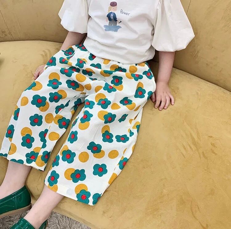 レトロチックな色使いがかわいいコットン生地のパンツです♡